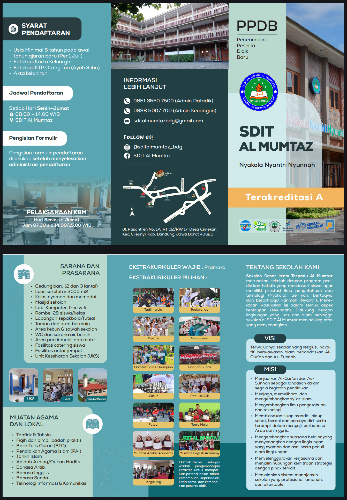SDIT Al-Mumtaz memiliki gedung baru 2–3 lantai dengan luas ±3.000 m², ruang kelas nyaman (maks. 28 siswa), serta fasilitas lengkap seperti masjid, lab komputer dan WiFi, lapangan, taman bermain, kebun sekolah, UKS, area parkir, catering, dan layanan antar-jemput.